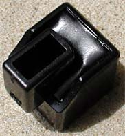 To remove the caps on the SevenTowns corner cubies, I drill a hole into the cap and use a hook to pop it out. It won't be used again anyway. For edges, it's a simple matter of pouring. This technique was first shown on the Puzzle reconstruction site. Take note, that if you were to pour the polyester resin straight into the edge piece while it was on it's back, the liquid would come out the lower end. Use blutack or putty to balance the edge pieces on their spine. The polyester resin flow must fill up level with the back wall of the edge cube at least, as you can see in the photo on the left.