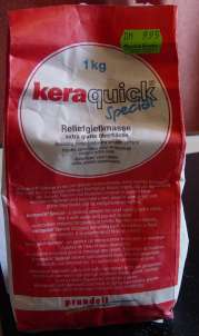 Occasionally, he uses wood. For filling holes, Jürgen uses a material called "Keraquick", a non-toxic ceramic powder that can be mixed with water.