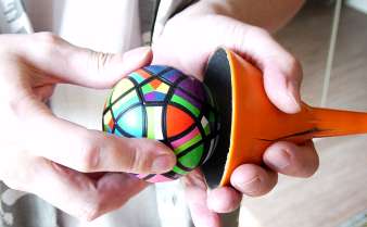 Jürgen also adapted his "Megaminx-ball" in a truly ball-shaped, almost fully round puzzle: