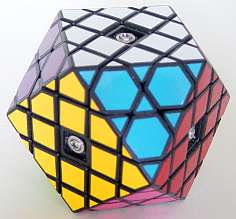 The principle of the X-cube can also be applied to a "Megaminx", yielding this puzzle: