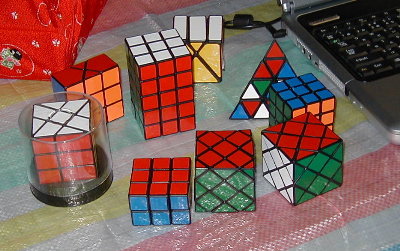 I asked him about his first experience with the Rubik's Cube. "I played with a Rubik's cube first in 1980. Although I was a high school student in those days, I found the solution method by myself. However, that solution method was not efficient, and it took a long time to solve. I can solve it only by that solution method even now." (Almost none of the contestants I talked to in Toronto at the 2003 Rubik's Cube Championships developed their own solutions unless they used a computer.) He developed an interest in modifying puzzles, he says, "When I saw an Octagon Cube for the first time on the Internet, I happened to think, I can make that myself! I was lucky that the 100 yen cube was put on the market in Japan." (The 100 yen shop is similar to dollar stores in the US and Canada.)